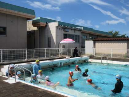 天気や暑さ指数を考慮しながら、6日(火)までプール開放を行います。