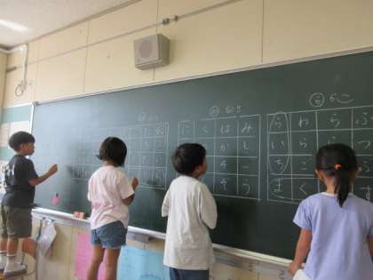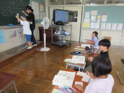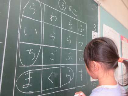 黒板にマスを作ってもらい、一人一人が取り組めるのも本校のよさです。