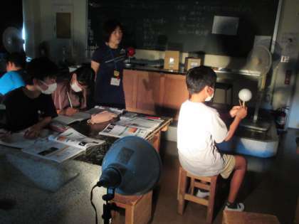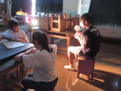 実験器具のライトを太陽に、ボールを月に、観測者自身を地球に見立て、「なぜ」に対する答えを見出していました。