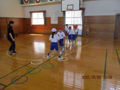 今日も「体ほぐしの運動」です。楽しく体を動かしていました。写真はケンパじゃんけんをしているところです。決着が付くまで何度もケンケンパを繰り返していました。2回対戦して仲良く1勝1敗でした。