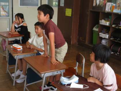その時間、自分が何に取り組みたいかを事前に考え、教室の友達に伝え合っていました。