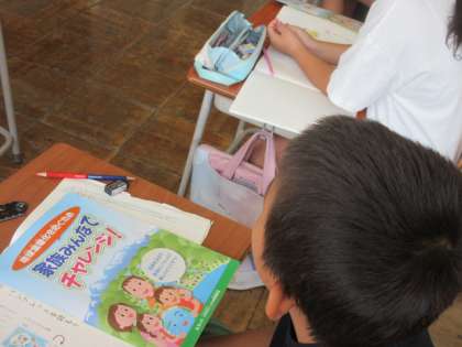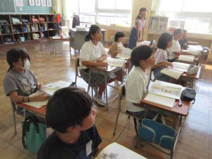 配付されたパンフレットの特徴や工夫を探りながら、目的意識をもって情報を得ようとしています。