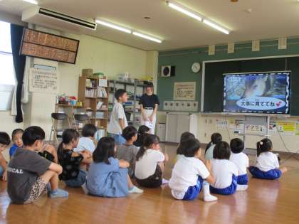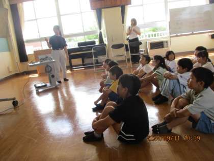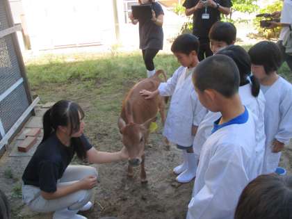 中央農業高校の先生や生徒のみなさんに牛の育ち方やお世話の仕方を教えていただきました。キラキラした目で話を聞いていた子供たち。その後の質問タイムでは質問が止まりませんでした。