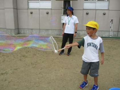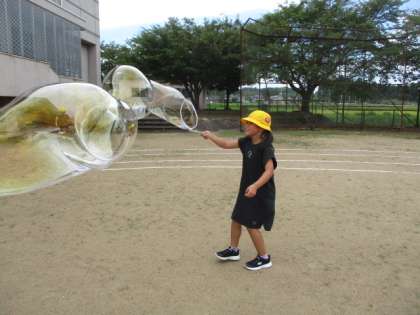 9月12日(木)1・2年生 サイエンスカー(しゃぼん玉遊び)1