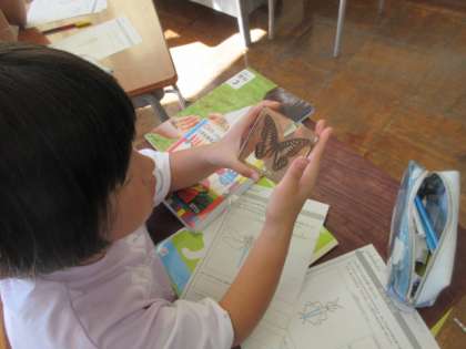 昆虫の体のつくりについて学んでいます。