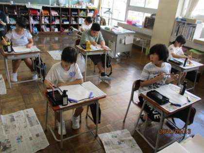 9月13日(金) 5年生 国語科(書写) 公開日 2024/09/13 更新日 2024/09/13 池多っ子ゴーゴー 用紙にあった文字の大きさに気を付けて「飛行」という文字を練習しました。心を落ち着け静かに書きました。