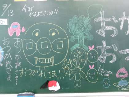 黒板いっぱいのメッセージ。 下級生のみなさん、ありがとう!