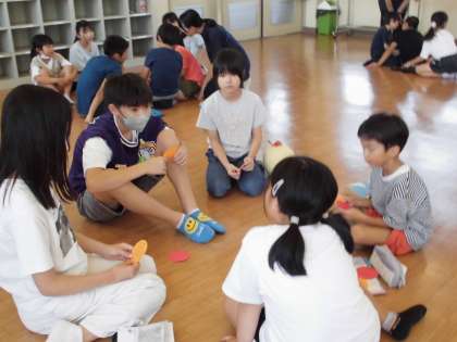 班の友達のがんばっているところや、よいところを「赤色のりんごの実」に書きました。