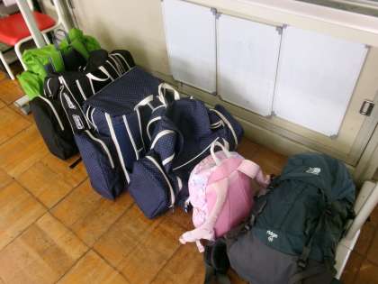 初めての宿泊学習の前に、荷物点検を行います。