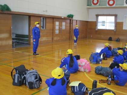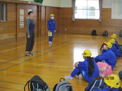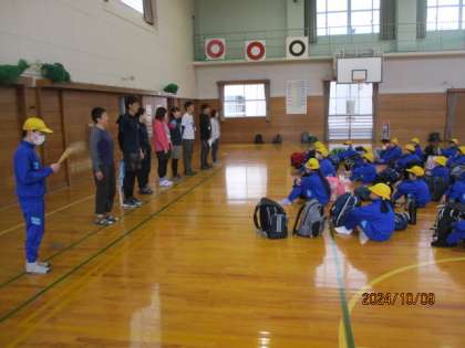 体育館で出発式を行いました。児童代表の目当ての発表、校長先生の話、引率する職員の紹介がありました。欠席なく全員が参加しました。