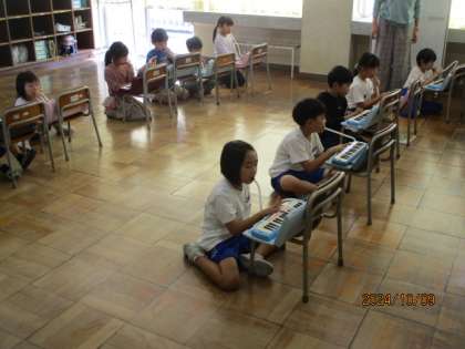 ドの場所、指づかいを覚えながら、鍵盤ハーモニカの練習をしています。