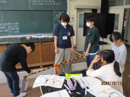小さな力で、おもりを楽に持ち上げる方法を考えています。