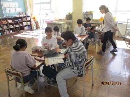 学習発表会に向けて、発表の言葉を分担し、グループごとに練習しています。