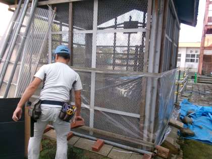 用務員さんが、小屋の半分をビニルで覆ってくださいました。