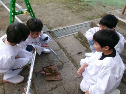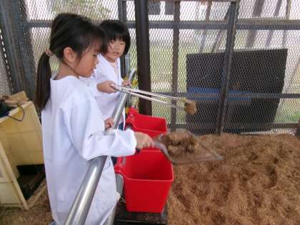 うんちを拾って状態を見たり、においをかいでみたり、上学年と一緒にブラッシングしたりしました。