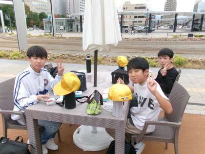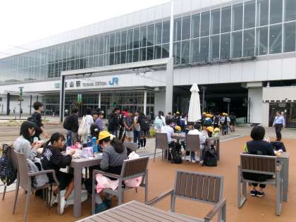 お弁当は、駅前広場でおいしくいただきました。