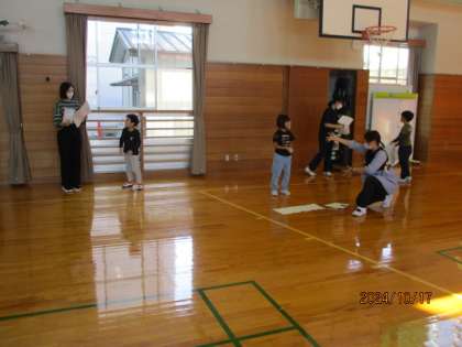せりふを覚えて振り付けを考え、友達にアドバイスをおくりながら練習しています。自信をもって大きくゆっくり言えるようになっています。