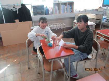 来週の学習発表会の劇で使う道具を制作しています。細かいところにもこだわって作業を進めていました。伝えたい内容がより伝わりそうですね。