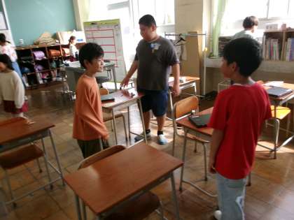 このグループでは、「宝さがし」をしました。宝を隠して、「どこにあるかな」と必死に探していました。宝は事前に折り紙を使ってつくりました。