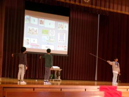 英語を分かりやすく伝えるために、大きなジェスチャーを付けました。