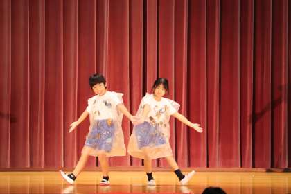 3・4年生は「ファッションショーin IKEDA」と題し、図画工作科で作成した服、体育科で考えた動き・ダンスを紹介しました。