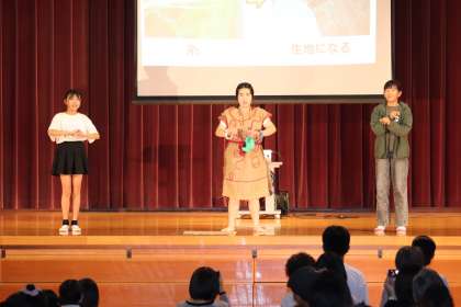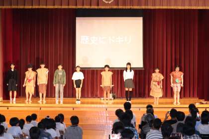 6年生は社会科や校外学習で学んだ縄文時代の様子や食事について劇を通して発表しました。それぞれ役になりきり、一つの劇をつくりあげました。小学校生活最後の学習発表会。6年生ありがとう。