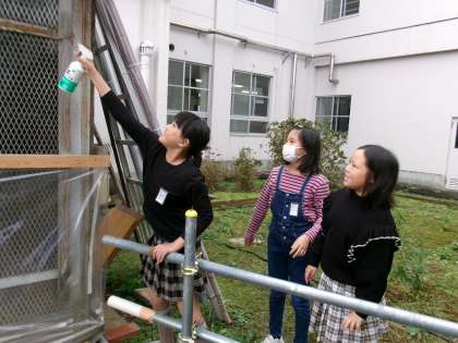 小屋のもみがらの下にマットを敷いてななこが気に入るかを調べたり、虫が寄りにくいハッカ油をななこのベストや小屋にかけたり、はえ取りをしたりと思い思いに取り組んでいます。