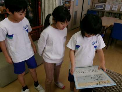 相変わらず人なつっこく、当番の子供の白衣をかみ、甘えていました。