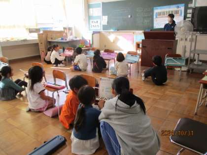 歌を歌いながら、鍵盤ハーモニカの指づかいを覚えています。うまく弾けるかな。