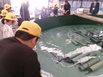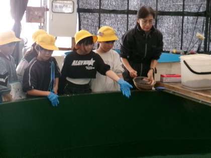午後からは、近畿大学水産研究所に行きました。養殖場の見学とえさやり体験をしました。養殖についてたくさん話を聞くことができました。