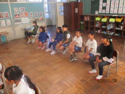 やまびこの歌を学習していました。言葉やメロディをよく聞いて楽しく繰り返しながら歌っていました。みんなで声を揃えて歌うのが楽しそうでした。
