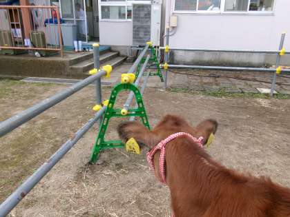 朝、下学年の当番が、干し草をたっぷりあげます。