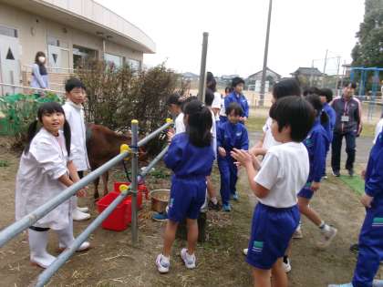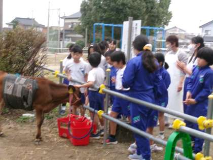 放牧中のななことふれ合い、教室に戻ります。