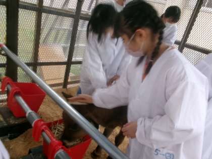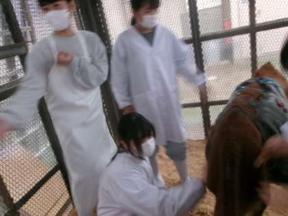ななことのふれあいタイムです。ななこ、3か月間、池多っ子と過ごしてくれてありがとうの気持ちをもって6年生もふれあっています。