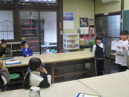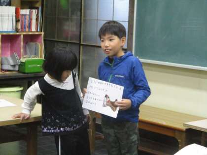 お弁当の前に、古沢小学校の友達と社会クイズを出し合いました。おまけに、ななこクイズも出しました。ななこへの愛が伝わってきました。古沢小学校の3年生も、交流会での発表を覚えていてくれて、よく考えながら答えてくれました。ありがとう!