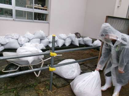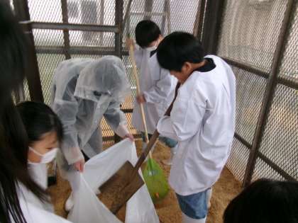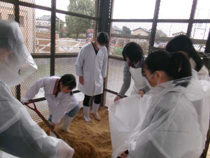 雨の中、合羽を着て、6年生が牛小屋掃除をしてくれました。