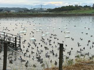 今朝の田尻池は曇っていて、気温は10度と高めです。飛来数は20羽くらいでした。