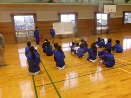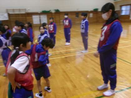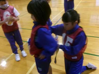 6年生の国語「みんなで楽しく過ごすために」で考えたあそびを、1、2年生と行いました。しっぽとりをして交流をしました。