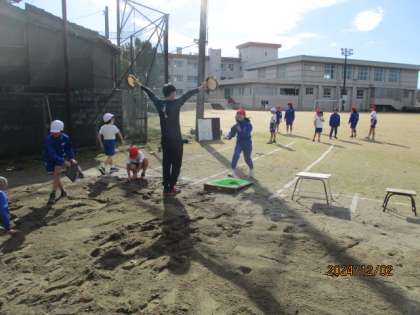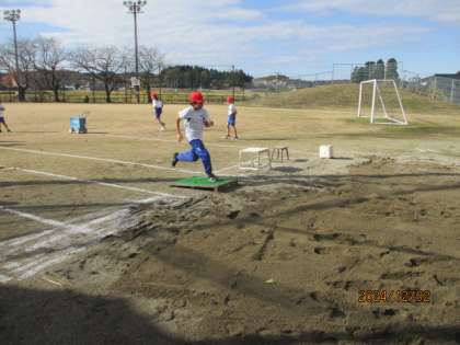 走り幅跳びをしています。それぞれの課題に合わせて練習を考え取り組んでいます。記録は簡単には伸びていかないようですが、何度も練習を重ねる様子がステキでした。
