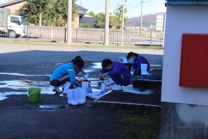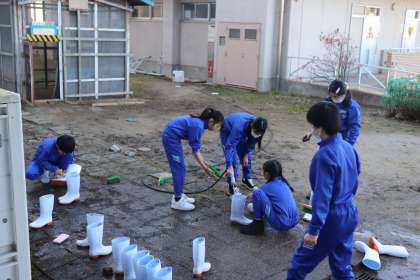 ななこの世話にたくさん使った長靴をきれいに洗い、拭き上げました。冷たい水を使った作業でしたが、最後まで丁寧に取り組む6年生でした。