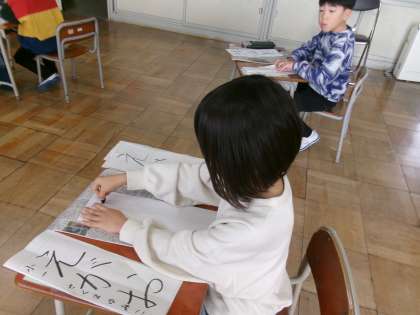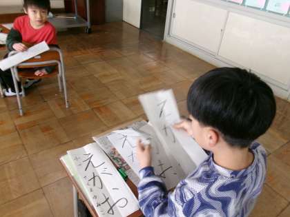 形が取りにくい文字ですが、手本を見ながらがんばっています。