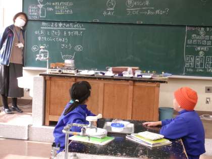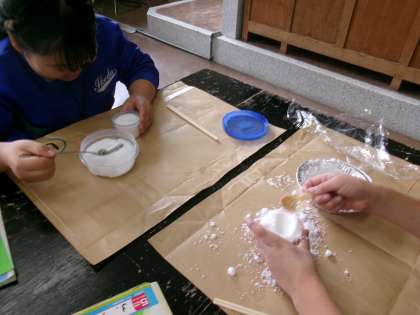 先生が準備された道具を使って、今日は、「塩と砂糖」の重さを比べます。