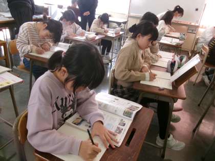 下学年の子供たちには、先生から「じ学のヒント」が配られました。