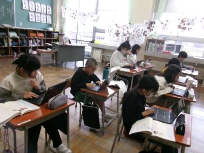 国語の時間、高岡銅器のリーフレットづくりが進んでいます。