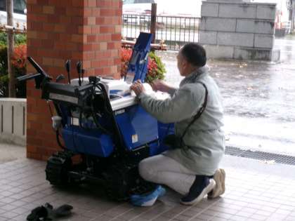 用務員さんが、除雪機の点検、試運転をしてくださいました。