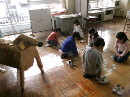 校長先生に読み手をお願いし、本番さながら、ななこを観客に行いました。
