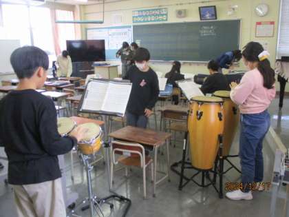 12月17日(火) 6年生 音楽科 公開日 2024/12/17 更新日 2024/12/17 池多っ子ゴーゴー 自分の担当する楽器を練習しています。速いテンポの難しい曲ですが、友達と教え合ってよい合奏になるよう取り組んでいます。
