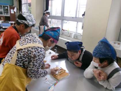 5年生のクリスマス会は、最後のプログラムがケーキづくり。