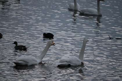 今朝の田尻池もたくさんの白鳥、カモたちでにぎわっていました。飛来数は79羽でした。
