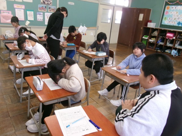 新年のあいさつをし、5年生は地域の方へお手紙を書いたり、かがやき級では今学期の目当てを立てたりしました。
